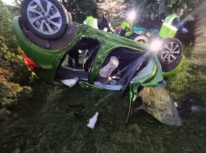 Alle ore 5:45 circa la stessa squadra di Nereto si è recata in Contrada Riomoro di Colonnella, sulla strada provinciale che collega il Centro Commerciale Val Vibrata con Colonnella paese, dove si è verificato un grave incidente stradale. Una Opel Karl, con quattro ragazzi a bordo, mentre per correva la strada provinciale in direzione Colonnella, è uscita di strada e dopo aver percorso una decina di metri e abbattuto due alberi si è ribaltata sul tettuccio nel terreno adiacente alla strada. All’arrivo della squadra tre dei giovani occupanti dell’auto erano già fuori dall’abitacolo, mentre il quarto si trovava sul sedile posteriore in stato di semincoscienza. I vigili del fuoco hanno dovuto tagliare la portiera posteriore con la cesoia idraulica per estrarre l’infortunato e hanno collaborato con il personale sanitario dell’automedica e delle ambulanze giunte sul posto, per prestare soccorso a tutti e quattro i giovani feriti nell’incidente. Sul posto è intervenuta anche una pattuglia dei Carabinieri di Controguerra per la regolazione del traffico e i rilievi dell’incidente. I quattro giovani feriti sono stati tutti trasportati in ospedale con tre ambulanze giunte sul luogo dell’incidente da Sant’Omero, Giulianova e Ascoli.