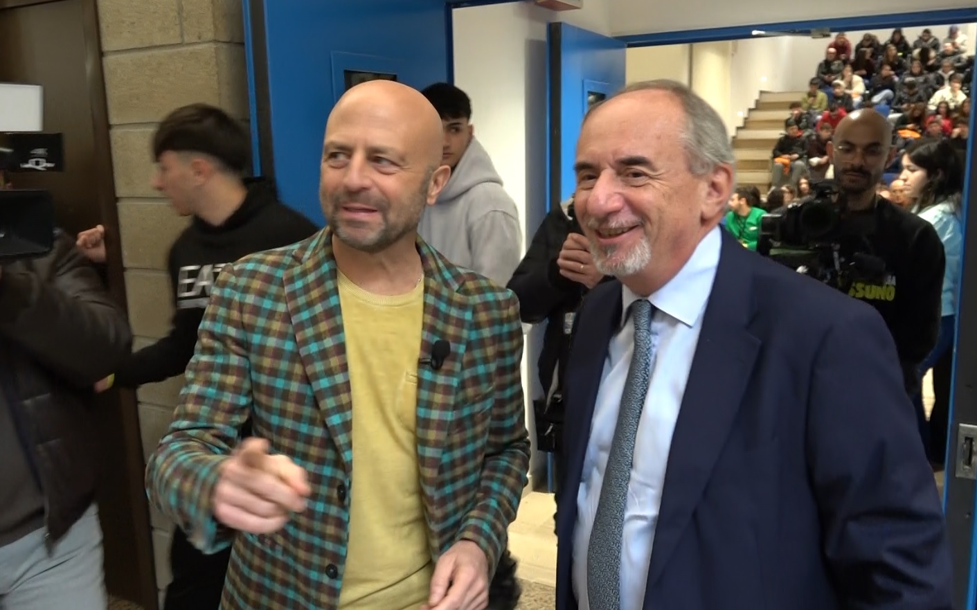 Luca Abete, il popolare inviato della trasmissione televisiva “Striscia la Notizia”, questa mattina a Pescara presso l’Ud’A dove ha incontrato gli studenti per affrontare il tema della solitudine dei giovani