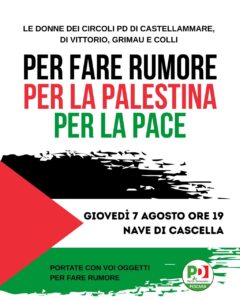 Oggi, giovedì 7 agosto, alle ore 19, l’appuntamento è alla Nave di Cascella. La partecipazione è aperta a tutti, basta portare pentole e coperchi per fare rumore per Gaza e per il riconoscimento dello Stato di Palestina.