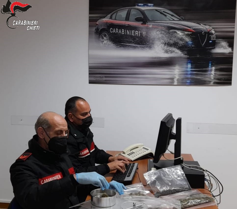 I carabinieri dell’aliquota Radiomobile di Ortona hanno arrestato per evasione dalla detenzione domiciliare un agricoltore 67enne di Orsogna già con diversi precedenti. L’uomo stava scontando in detenzione domiciliare la condanna a due anni di reclusione per spaccio di stupefacenti. Ieri pomeriggio l’equipaggio in turno non lo ha trovato in casa ed ha avviato subito le ricerche in collaborazione con i carabinieri della locale stazione: conoscendo le sue abitudini, hanno capito subito dove poteva trovarsi. Ed infatti il 67enne è stato rintracciato poco dopo. L’uomo ha chiesto più volte e senza alcun motivo di poter avvisare il figlio, anche lui con diversi precedenti per spaccio di stupefacenti, e questo atteggiamento ha insospettito i carabinieri. Una volta a casa dei due, dopo accurate ricerche i militari hanno scovato alcuni flaconi dove era occultata marijuana per un peso di oltre un etto insieme ad un bilancino di precisione e l’occorrente per confezionare le singole dosi. Entrambi sono stati denunciati in stato di libertà alla procura della Repubblica di Chieti per detenzione ai fini di spaccio di stupefacenti. Il padre è comparso stamattina dinanzi al giudice del tribunale di Chieti all’udienza di convalida per direttissima. Il giudice ha convalidato l’arresto e gli ha applicato la misura cautelare degli arresti domiciliari con il braccialetto elettronico in quanto già recidivo essendo stato denunciato in stato di libertà, solo qualche mese fa, dai carabinieri della locale stazione sempre per evasione.