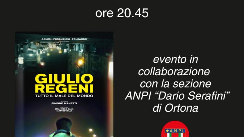 Il Cinema Zambra e ANPI Ortona insieme per Giulio Regeni: mercoledì 18 febbraio proiezione speciale tra memoria e impegno civile