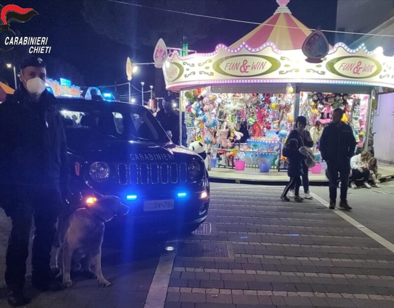 La compagnia dei carabinieri di Ortona nel weekend del Primo Maggio ha attuato un servizio straordinario di controllo del territorio. Ma a differenza dei weekend di Pasqua e della festa della Liberazione, questa volta il servizio si è concentrato ad Ortona dove si sta’ svolgendo la storica festa del Perdono ed in onore di San Tommaso Apostolo e a Fossacesia Marina dove si sviluppa il fenomeno della “movida”. Ad Ortona sono stati svolti capillari controlli in tutto il centro urbano con particolare attenzione ai due luna park allestiti al parco Ciavocco e nel piazzale dello stadio comunale nonché lungo la Passeggiata Orientale, dove si sono tenuti due eventi musicali, e quindi ai diversi bar delle aree interessate. In supporto ai carabinieri della compagnia è intervenuta da Chieti anche un’unità antidroga con il pastore belga Axel,che ha aiutato i militari ad individuare due giovani ortonesi che, grazie al suo fiuto, sono stati trovati in possesso di modiche quantità di marijuana, hashish e cocaina; entrambi sono stati segnalati alla prefettura di Chieti e rischiano diverse sanzioni amministrative tra cui la sospensione della patente di guida, il ritiro dei documenti validi per i viaggi all’estero ecc.