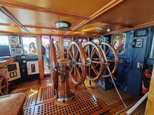 Una volta guadagnato l’ingresso a bordo, un po’ di emozione arriva: la Vespucci è effettivamente una nave bellissima, perfettamente tirata a lucido, con i suoi alberi affascinanti, il suo sapore d’altri tempi, il calore del legno che avvolge in ogni angolo.