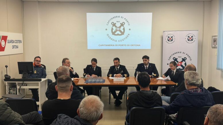 Il Comandante della Capitaneria di porto di Ortona, Capitano di Fregata (CP) Dario Gerardi, ha incontrato, questa mattina, una rappresentanza della locale marineria, offrendo un’importante occasione di dialogo e di confronto con gli armatori delle unità impiegate nell’attività di pesca a strascico.