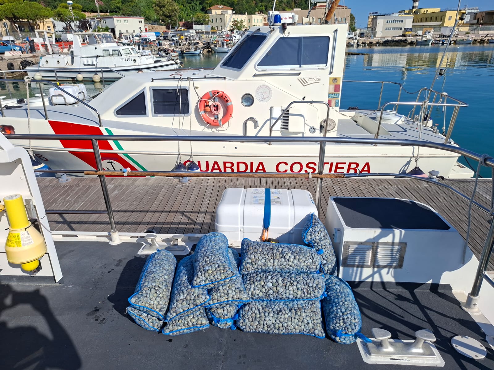 Militari della Capitaneria di porto di Ortona e del 14° Centro controllo area pesca della Direzione marittima di Pescara hanno sequestrato oltre 170 kg di vongole, prive di qualsivoglia tracciabilità e provenienza, destinate all’immissione sul mercato nero dei prodotti ittici