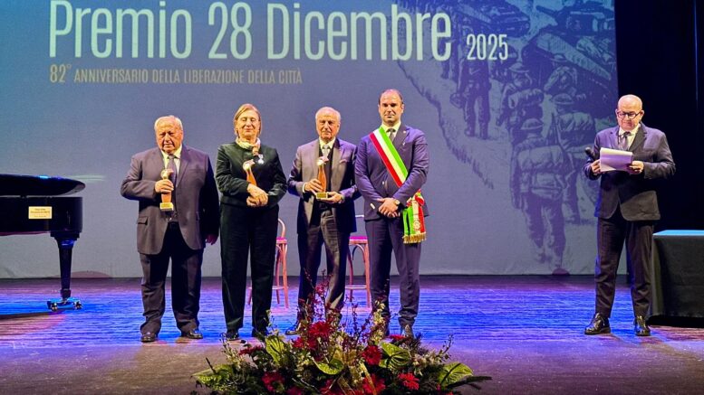 Ortona ha celebrato il momento più significativo del proprio calendario civile con l’edizione 2025 del Premio 28 Dicembre, una cerimonia che ha intrecciato memoria storica, riconoscimento delle eccellenze e sguardo verso il futuro. In tre sul palco del Teatro Tosti per un premio senza tempo