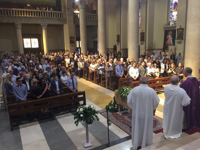 Questa mattina, nella cattedrale di S.Cetteo a Pescara, c’era davvero tutto l’Abruzzo, autorità politiche, il mondo della cultura, colleghi giornalisti, ed i suoi telespettatori per un ultimo saluto al nostro direttore, ma soprattutto al volto più amato dell’emittenza privata nella nostra Regione. Dal vice presidente del Csm Giovanni Legnini, ad alcuni parlamentari abruzzesi come Razzi, Fusilli e Melilla, a numerosi esponenti della politica regionale, l’assessore Di Matteo, il consigliere Febbo, i sindaci di Pescara e Francavilla Alessandrini e Luciani, il vice sindaco de L’Aquila Nicola Trifuoggi, ed altri rappresentanti del mondo della politica e del sindacato , dello sport come il Presidente del Pescara Daniele Sebastiani, così come del giornalismo: dal presidente dell’Ordine dei Giornalisti Stefano Pallotta, al presidente del Corecom Filippo Lucci, ai tantissimi cronisti, molti dei quali gli devono molto. E poi i personaggi televisivi Vincenzo Olivieri, ‘Nduccio, Marco Papa, Maria Rita Piersanti, Mimmo D’Alessio, la proprietà di Rete8 con il presidente Luigi Pierangeli. Tutti stretti alla famiglia, la moglie Giulia, i figli Massimo, Marco e Silvia, un segno evidente di ciò che ha rappresentato Pasquale Pacilio il quale, come ha sottolineato Don Francesco Santuccione nella sua omelia, ha aiutato tutti noi a leggere i fatti del quotidiano nel sociale, nella vita pubblica e quella politica, negli usi e costumi di questa Regione da 40 anni in qua, da quando apparve per la prima volta in Tv, agli albori delle televisioni private, fino allo scorso 19 giugno per la sua ultima storica apparizione nel corso dello speciale elezioni sui ballottaggi delle Amministrative. Non chiedete a Dio perchè ce lo ha tolto, ma ringraziatelo perchè ce lo ha dato, ha ricordato ancora Padre Francesco citando S.Agostino, ed é stata effettivamente una fortuna di cui essere grati, aver lavorato al suo fianco, lo è stato nei momenti più difficili, così come nei momenti più felici, perchè in entrambi i casi, come amava sempre dire con quel suo inconfondibile intercalare napoletano…..E addò sta ‘o problema ?