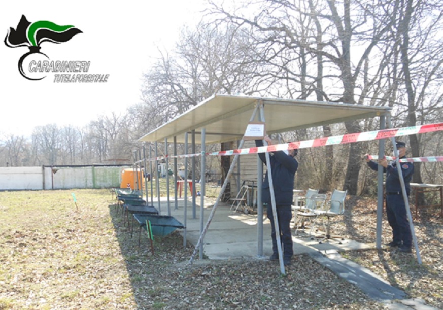 I militari della Stazione Carabinieri Forestale di Gissi hanno operato il sequestro preventivo di un poligono di tiro a cielo aperto sia per mancanza di titolo autorizzativo urbanistico-edilizio di una serie di manufatti realizzati all’interno, non temporanei bensì pienamente funzionali all’attività (fossa interrata di lancio piattelli, rimesse attrezzi, uffici, ecc.), sia per carenza di una valutazione previsionale di impatto acustico che di una recinzione ed adeguata tabellazione dell’area, sottoposta a vincolo paesaggistico-ambientale.