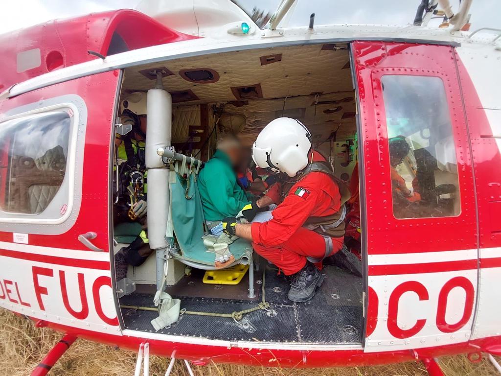 Pastore di 72 anni si sente male mentre è al pascolo in alta montagna a Rocca Santa Maria: raggiunto in elicottero dai vigili del fuoco, viene portato all’ospedale di Teramo
