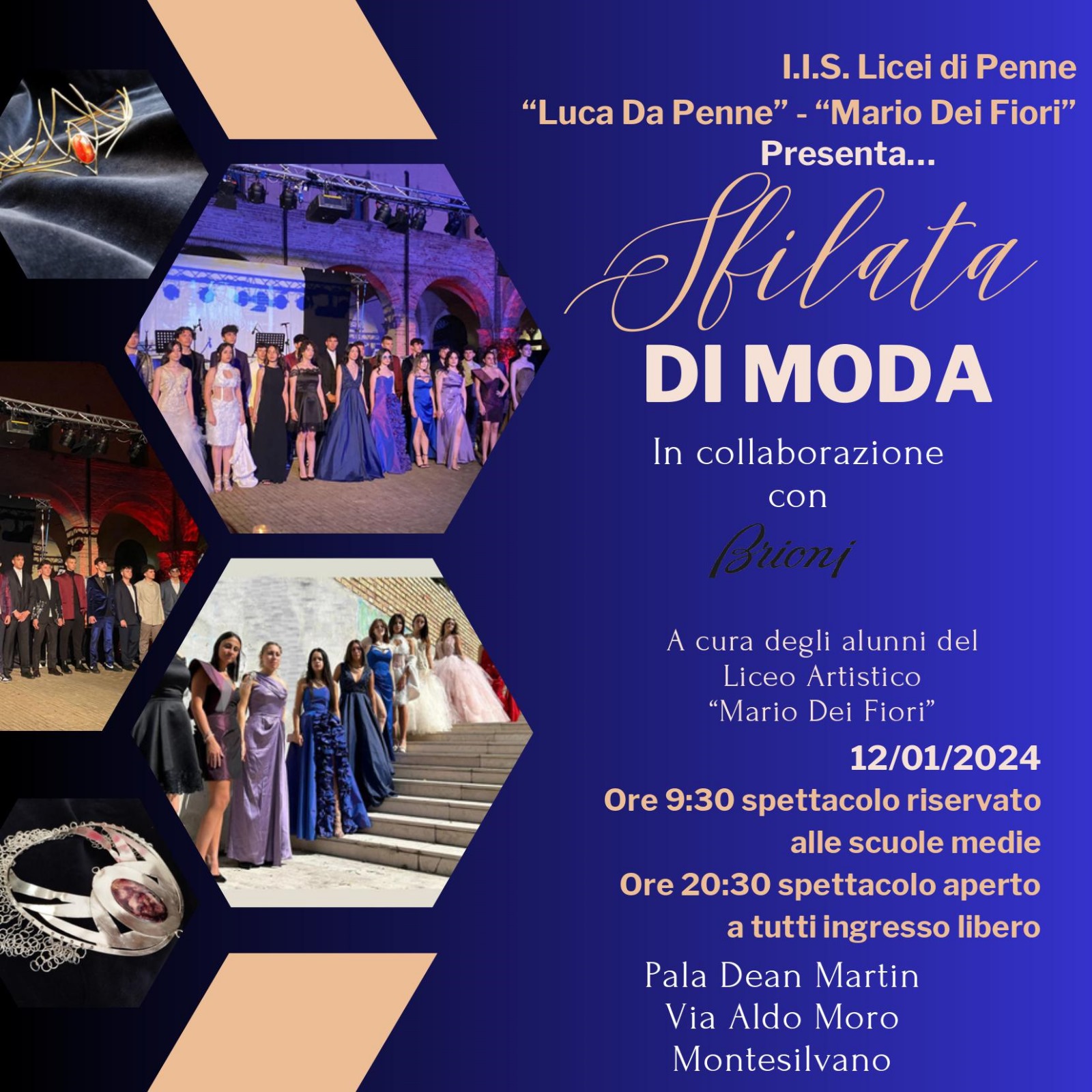 Due appuntamenti, uno la mattina rivolto alle scuole ed uno la sera per l’intera cittadinanza, al Pala Dean Martin di Montesilvano per una sfilata di moda organizzata dal Liceo Artistico “Luca da Penne – Mario Dei Fiori”.