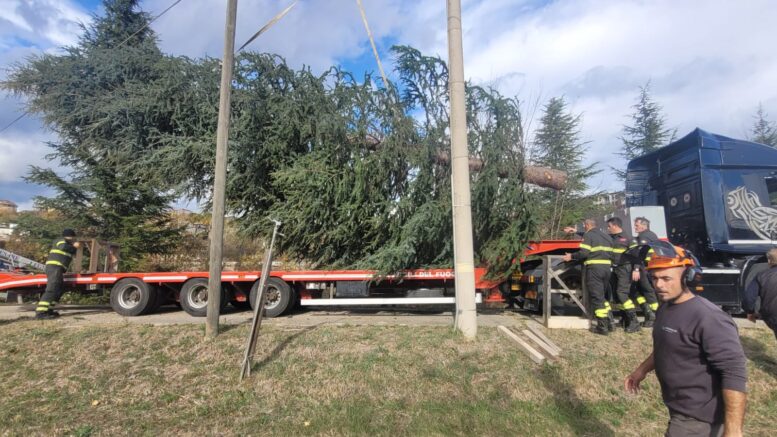 L’albero è stato trasportato, in spirito di collaborazione tra Istituzioni, dagli uomini del Comando dei Vigili del Fuoco dell’Aquila.