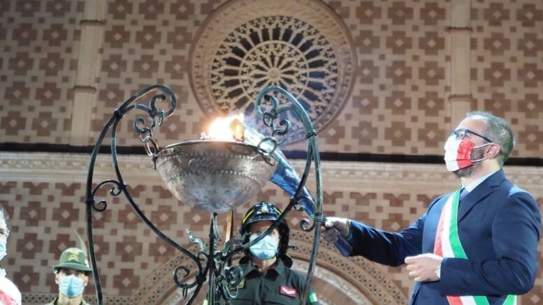 L’arrivo del Fuoco del Morrone all’Aquila dopo il suo viaggio con l’accensione del