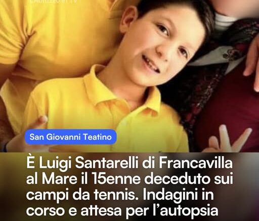 Nel frattempo il sindaco di San Giovanni Teatino, Giorgio Di Clemente, ha reso noto di aver appreso dalla famiglia che i funerali si terranno mercoledì alle 10.30 nella cattedrale di San Cetteo a Pescara. “A nome personale e di tutta l’amministrazione comunale – scrive il sindaco su Facebook – desidero esprimere la più sincera vicinanza alla famiglia Santarelli. In segno di memoria e affetto, la Sgt Sport dedicherà prossimamente eventi memorial a Luigi, affinché il suo ricordo continui a vivere attraverso lo sport, i valori del gruppo e la generosità che lo hanno sempre contraddistinto”.