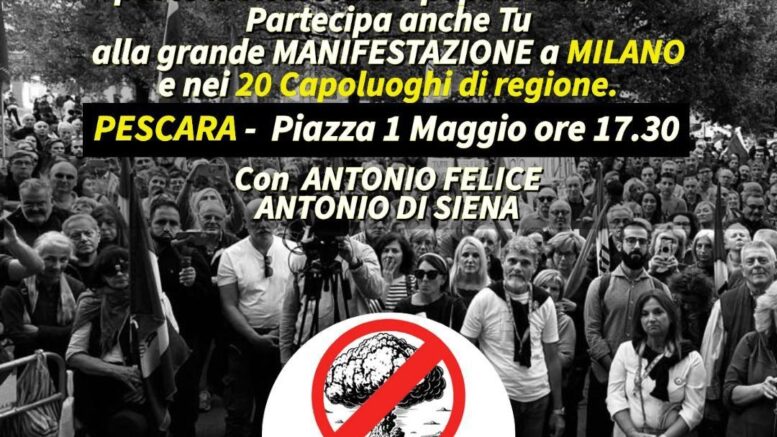 “Invitiamo tutti i cittadini a far sentire la propria voce perché uniti si vince. – si legge nella nota del comitato – Diamo appuntamento a tutti a Pescara in piazza 1° maggio, alla Nave di Cascella, a partire dalle ore 17,30, per ribadire il ruolo neutrale che i cittadini italiani vogliono per il proprio paese. Ripudiare la Guerra significa credere nella Pace per tutti, questo è quello che c’è scritto nella nostra Costituzione, questo è quello in cui crediamo! A differenza di quanto stanno cercando di fare in tutti i modi, non facciamo trascinare il nostro paese in questa guerra, ma facciamolo diventare un faro di Pace per tutti i popoli. Mettiamo la parola fine a questo conflitto che ogni giorno prende sempre di più i connotati della 3° Guerra Mondiale. Mentre l’Unione Europea decide di mandare ancora più armi in Ucraina anche con i soldi del PNRR, noi possiamo mandare un segnale forte e chiaro a chi ci governa ora e a chi ci ha trascinato in questa assurdità. Se questa guerra arrivasse nelle nostre case, chi se ne assumerà la responsabilità?”