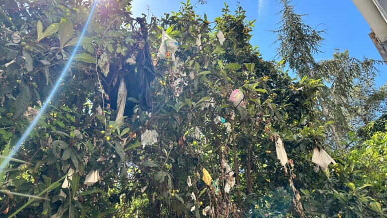 Fontanelle ci risiamo, eravamo stati qui diversi mesi fa per documentare una vera e propria discarica a cielo aperto nel giardino di un palazzo. Una denuncia andata a buon fine visto che qualche giorno dopo l’area è stata completamente ripulita, ma stamattina siamo tornati, invitati dal candidato sindaco di Pescara Domenico Pettinari ed abbiamo trovato questa situazione: la discarica è tornata a prosperare rigogliosa e perfino gli alberi, invece degli auspicati frutti, hanno mostrato la presenza, tra i rami, di buste di spazzatura.