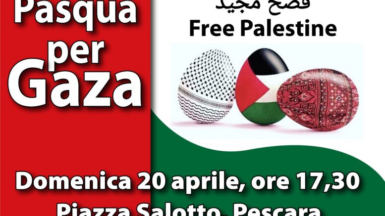 Si chiama Pasqua per Gaza la manifestazione di solidarietà organizzata a Pescara dall’associazione dei cittadini del Bangladesh residenti nella provincia. L’appuntamento è a Piazza Salotto domenica 20aprile alle 17.30 a Piazza Salotto.