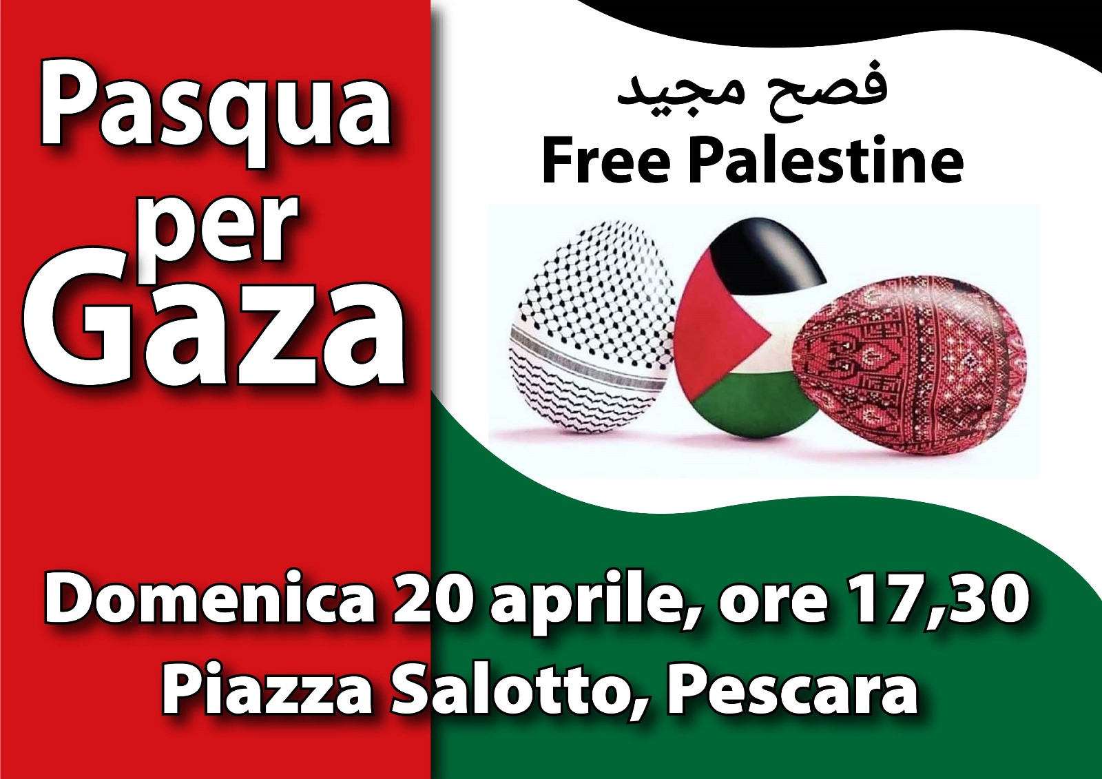 Si chiama Pasqua per Gaza la manifestazione di solidarietà organizzata a Pescara dall’associazione dei cittadini del Bangladesh residenti nella provincia. L’appuntamento è a Piazza Salotto domenica 20aprile alle 17.30 a Piazza Salotto.