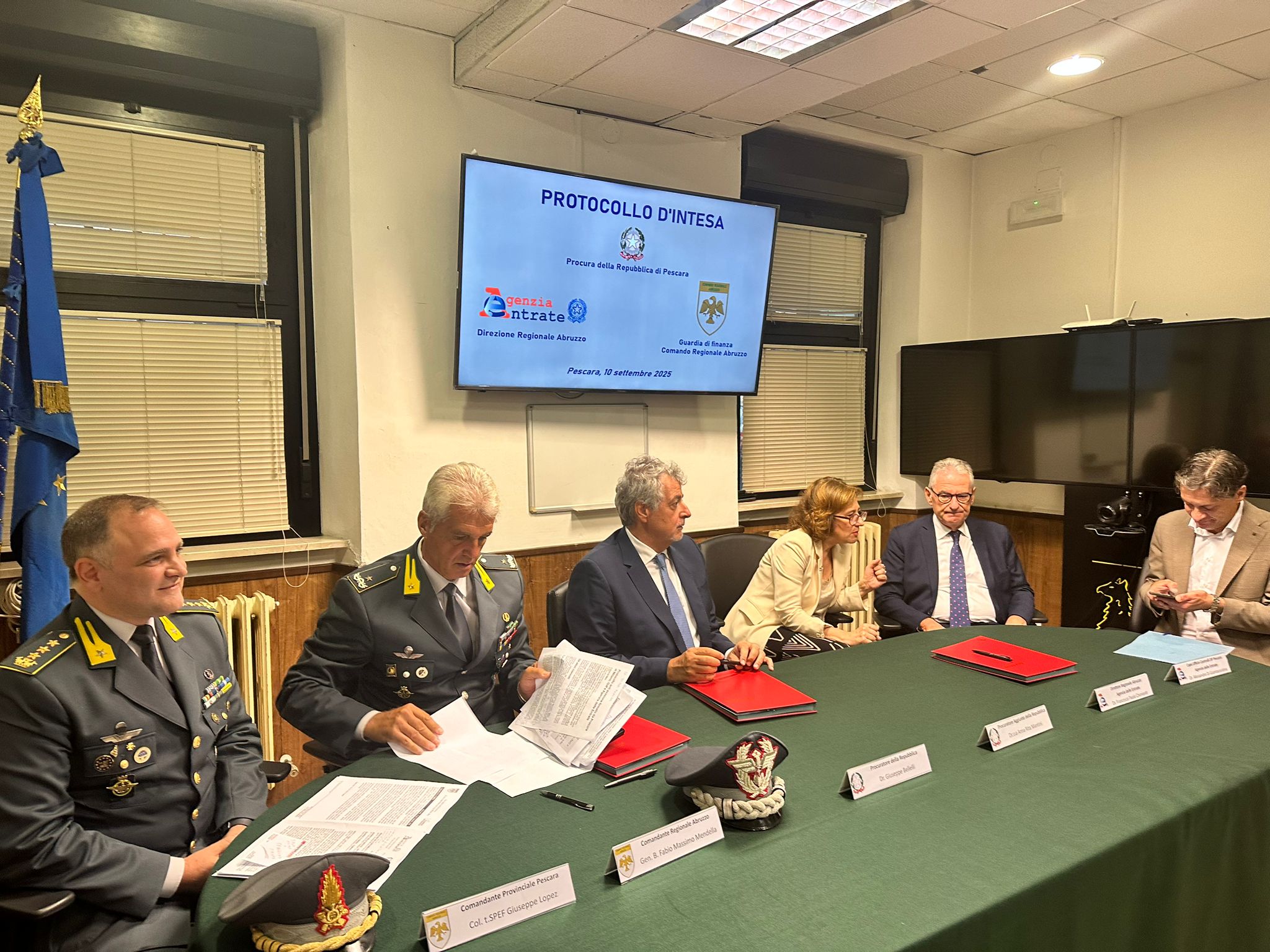 A sottoscriverne i contenuti, il Procuratore Capo della Repubblica di Pescara, Dr. Giuseppe Bellelli, il Direttore Regionale Abruzzo dell’Agenzia delle Entrate, Dr. Francesco Paolo Chimienti e il Comandante Regionale Abruzzo della Guardia di finanza, Gen. B. Fabio Massimo Mendella.