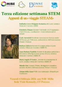 Scienza under 18 Pescara per l’Abruzzo e Donne e scienza, con il patrocinio dell’Università d’Annunzio Chieti-Pescara, celebrano la settimana STEM