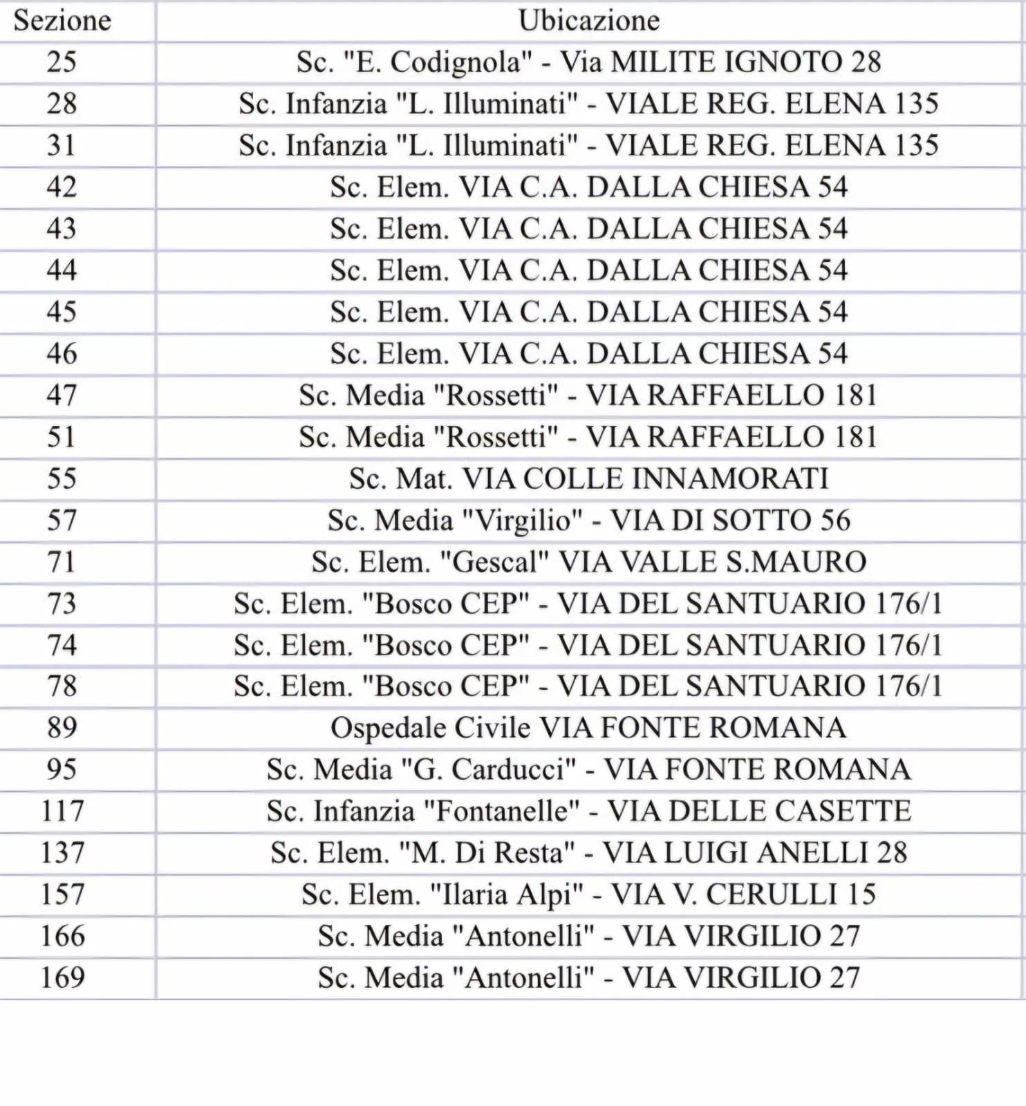 lista sezioni pescara