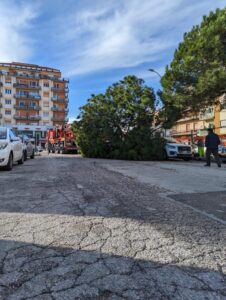 Un albero si è adagiato su un’auto parcheggiata in via Pepe nella zona del cantiere in corso. Pettinari, caos inaccettabile
