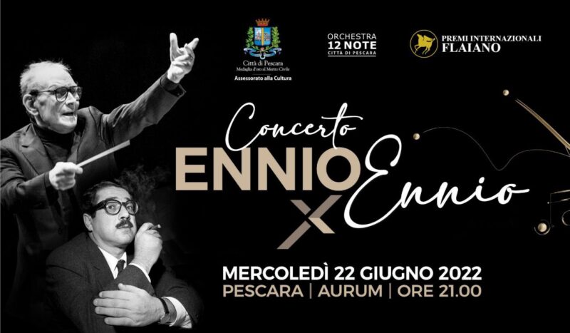 Il 22 giugno prossimo presso l’Aurum di Pescara, si svolgerà nell’ambito di Culturaurum, il concerto “Ennio x Ennio” organizzato dai Premi Internazionali Flaiano in collaborazione con l’Assessorato alla Cultura del Comune di Pescara