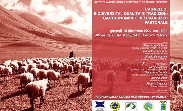 Si è svolto oggi nell’Officina del Gusto dell’Istituto Alberghiero Ipssar ‘De Cecco’ di Pescara, il convegno ‘L’Agnello: Biodiversità, Qualità e Tradizioni Gastronomiche dell’Abruzzo Pastorale’, promosso dalla scuola con il Consorzio di Tutela dell’Agnello del Centro Italia e con il patrocinio della Provincia di Pescara