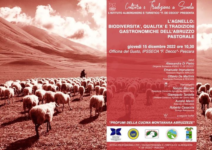 Si è svolto oggi nell’Officina del Gusto dell’Istituto Alberghiero Ipssar ‘De Cecco’ di Pescara, il convegno ‘L’Agnello: Biodiversità, Qualità e Tradizioni Gastronomiche dell’Abruzzo Pastorale’, promosso dalla scuola con il Consorzio di Tutela dell’Agnello del Centro Italia e con il patrocinio della Provincia di Pescara