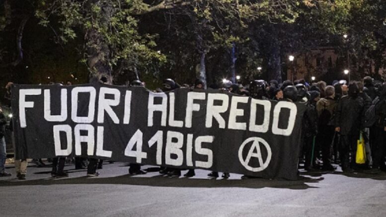 Manifestazione degli anarchici ieri sera nel centro storico di Pescara per chiedere lo stop al 41 bis per l’anarchico pescarese Alfredo Cospito