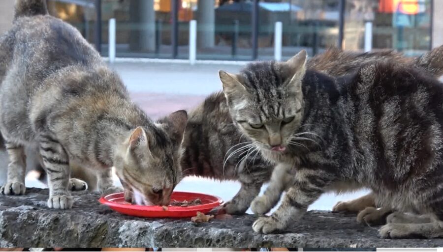 « Ho trovato un gatto in Via Tibullo – racconta Antonio al TG8 – e ho sentito il bisogno di occuparmene. Ho iniziato con due, poi sono diventati tre. Ora ne ho 32. Li accudisco in un’area ricavata accanto alla mia autofficina ma la sera esco e vado a dare da mangiare nelle quindici casette che ho fabbricato con le mie mani e che ho distribuito in vari punti della città».