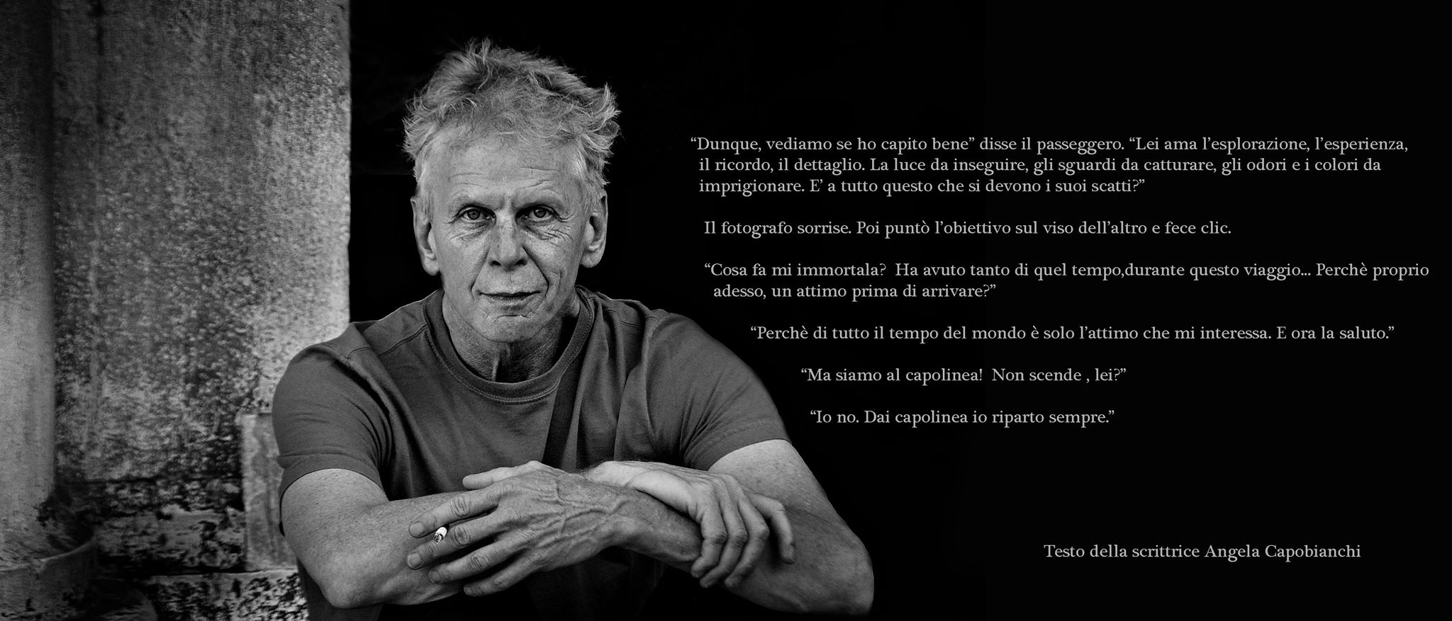 “Dunque, vediamo se ho capito bene – disse il passeggero – lei ama l’esplorazione, l’esperienza, il ricordo, il dettaglio. La luce da inseguire, gli sguardi da catturare, gli odori e i colori da imprigionare. È a tutto questo che si devono i suoi scatti?”