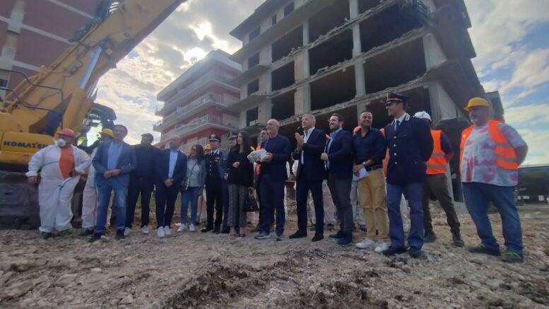 Scheletri mai completati e in degrado da anni, ritrovo di senzatetto e tossicodipendenti: a Pescara avviato l’abbattimento degli ultimi due palazzi Clerico in via Tavo