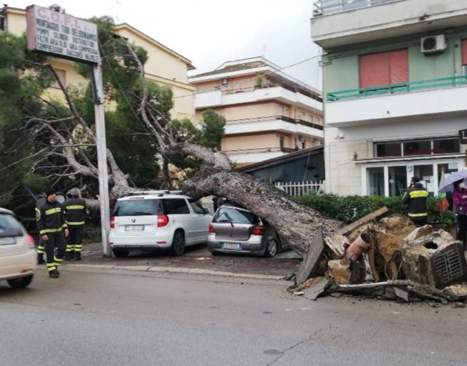 Sfiorata la tragedia lungo la Statale 16 Adriatica tra Pescara e Francavilla al Mare nei pressi della traversa con via Parisina, per un pino secolare che si è schiantato al suolo.