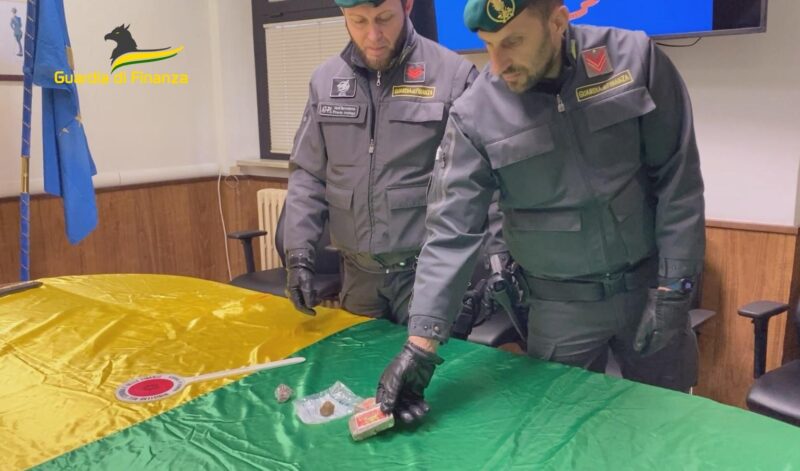 I militari, ispezionando il veicolo e gli occupanti, hanno scoperto, anche grazie al fiuto di ”Esco”, centinaia di grammi di hashish occultati dal pusher nella tasca dei pantaloni. Scattata anche la perquisizione nell’abitazione dello spacciatore, dove è stata rinvenuta altra droga.