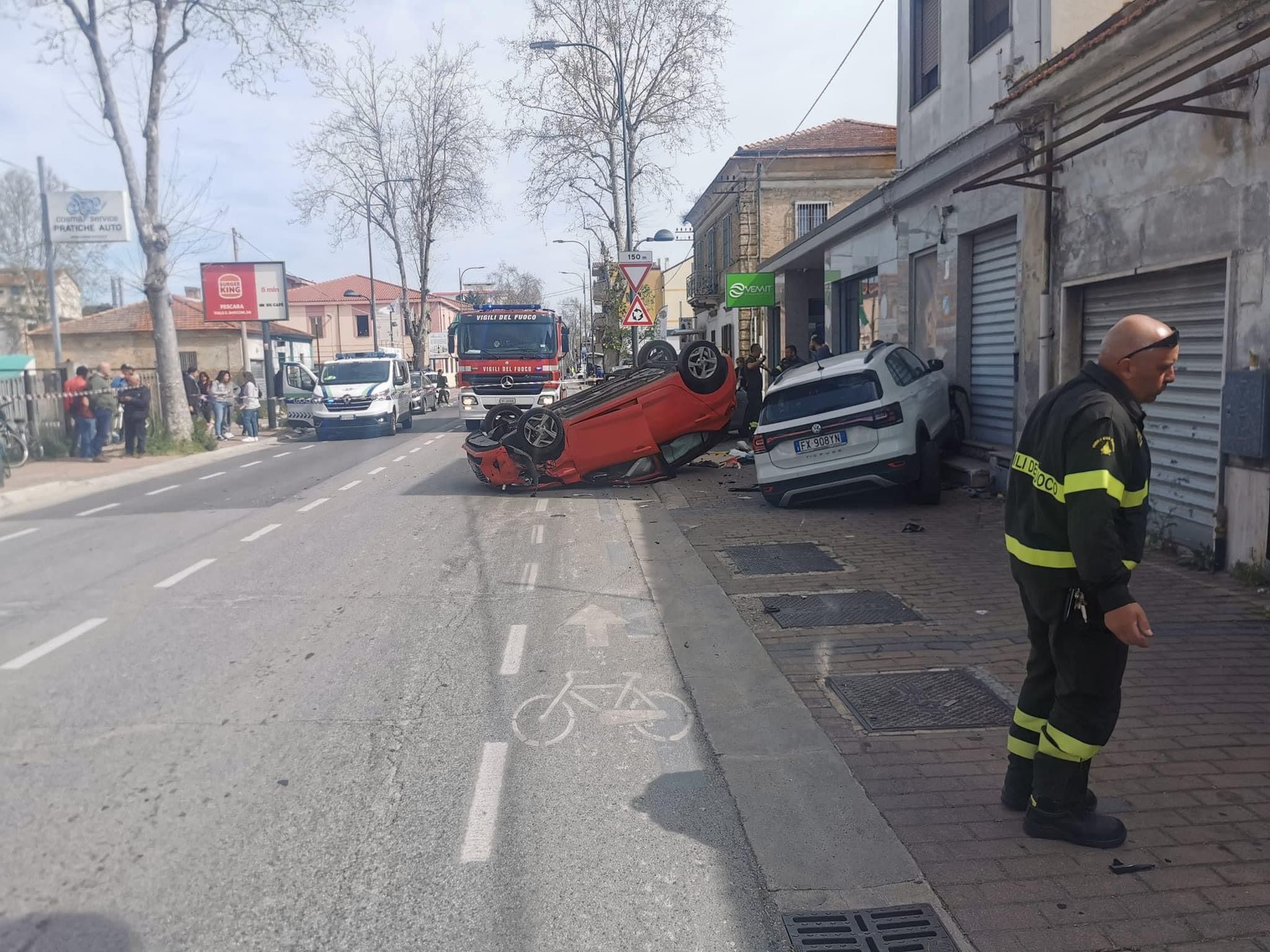 Una macchina ribaltata, un impatto violento e tre auto coinvolte: è accaduto questa mattina a Pescara, in via Tiburtina Valeria