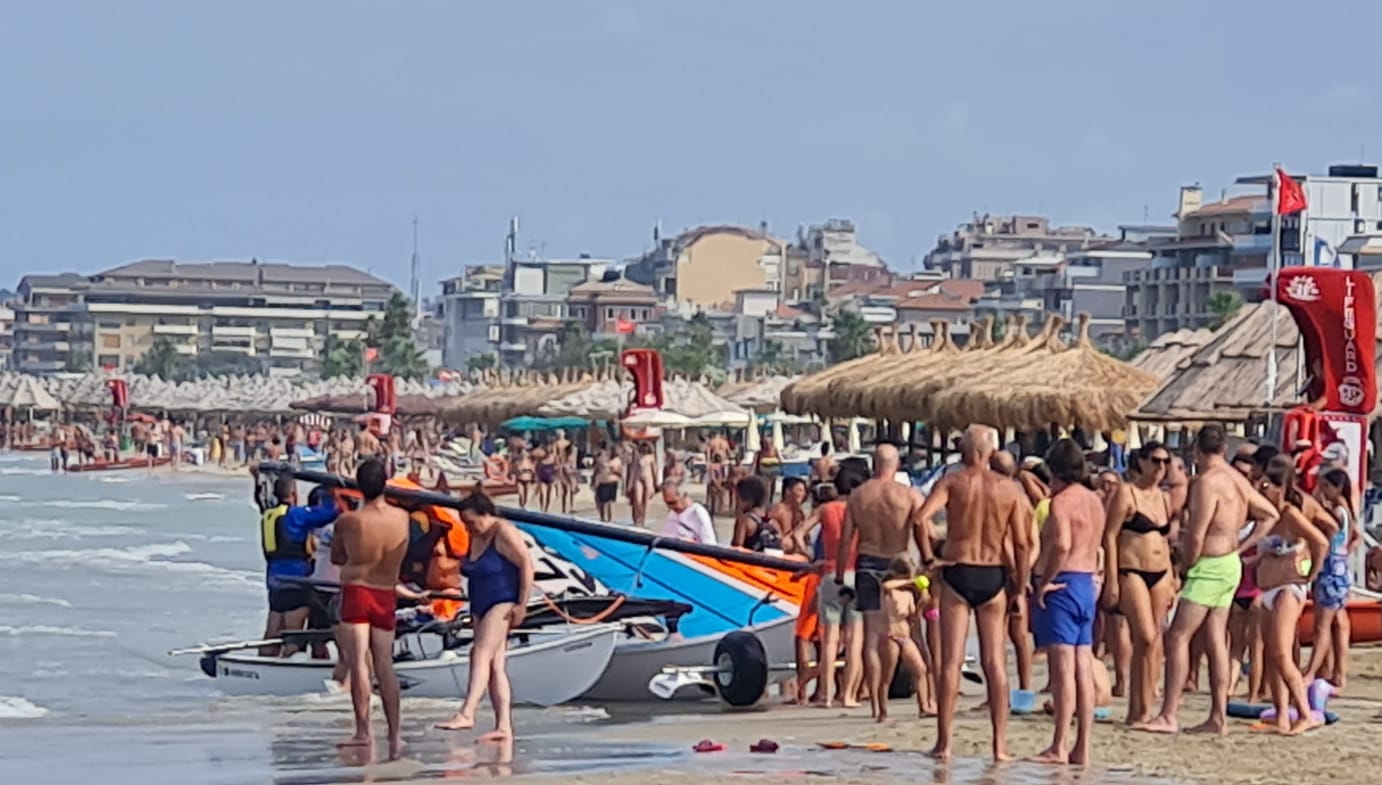 Catamarano scuffiato a 400 metri dalla riva all’altezza del lido “Barracuda”, a Pescara nord. 4 bagnini di diversi stabilimenti mettono in salvo barca e persone.
