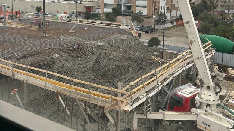Cede, in un cantiere a Pescara, l’armatura del solaio della nuova sede in costruzione del Liceo Artistico Mibe, “Misticoni-Bellisario”. Dalle prime informazioni non vi sarebbero feriti tra gli operai