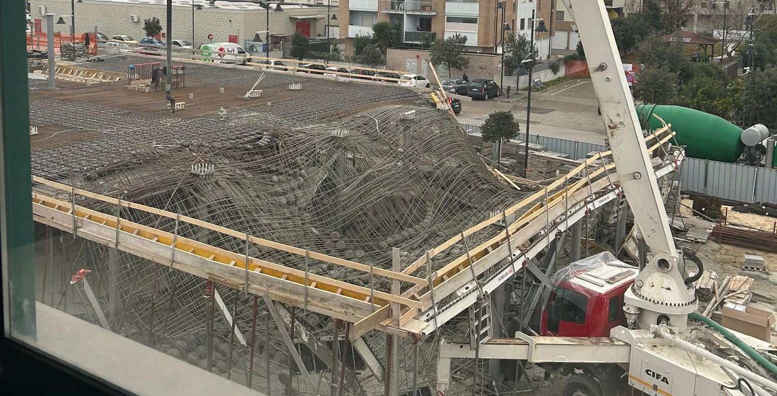 Cede, in un cantiere a Pescara, l’armatura del solaio della nuova sede in costruzione del Liceo Artistico Mibe, “Misticoni-Bellisario”. Dalle prime informazioni non vi sarebbero feriti tra gli operai