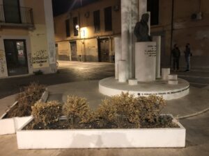 Non ci vuole un esperto in giardini e botanica per capire che le piante, o meglio ciò che di loro resta, nelle due aiuole sotto il busto di Flaiano non stanno solo patendo il gran caldo di questo agosto rovente. Basta un rapido sguardo per intuirle secche da parecchio e, comunque, abbandonate. E se non versa in condizioni migliori la vicina aiuola, l’aridità delle due fioriere sotto il busto di Ennio Flaiano non spedisce una bella cartolina da un angolo di città sempre molto frequentato anche d’estate. E vogliamo pensare a come la commenterebbe il genio di “coraggio, il meglio è passato”? Una città, la “sua” Pescara, che ogni due, tre anni ciclicamente rialza la voce per riaverne le spoglie in città, poi però non riesce a tenere in vita due piante sotto il monumento a lui intitolato mai peraltro valorizzato anche solo con dei faretti che lo facciano notare.