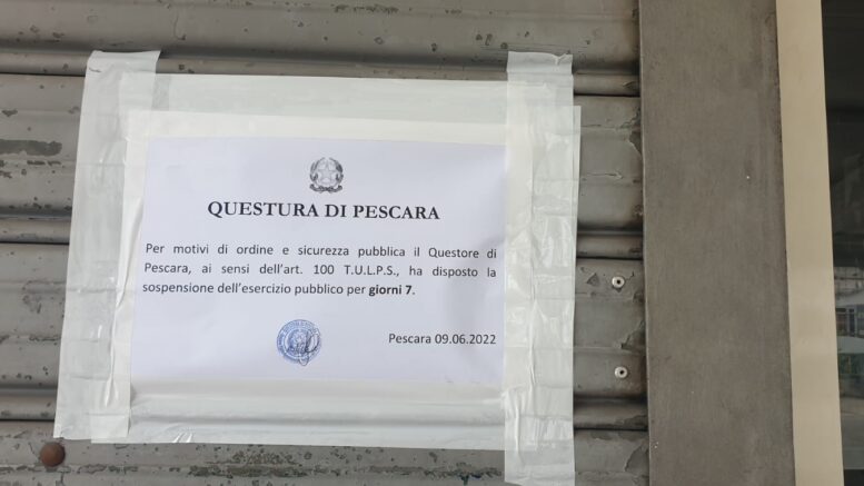 Il Questore di Pescara, Luigi Liguori, Autorità Provinciale di Pubblica Sicurezza, ha disposto la chiusura di tre esercizi pubblici