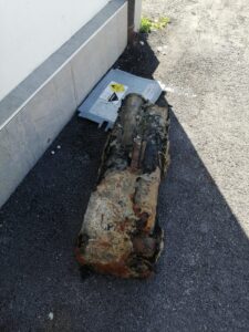 La Capitaneria ha subito segnalato il ritrovamento alla Prefettura di Pescara. Il residuato bellico consisteva in una cassetta logistica contenente due colpi completi della lunghezza di circa 90 cm. Dopo aver attivato il dispositivo di sicurezza con l’interdizione della zona portuale interessata, è stato allestito il presidio del personale della Guardia Costiera.