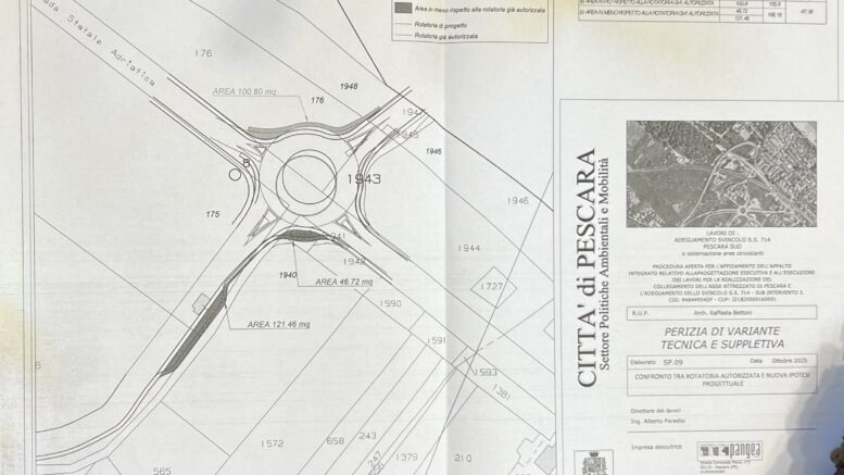 Di Pillo spiega che questa mattina, in commissione lavori pubblici, la dottoressa Bettone ha presentato quella che dovrebbe essere una rotatoria a sud della Riserva della Pineta Dannunziana. Si tratta in sostanza dei lavori di adeguamento dello svincolo della S.S. 714 che dovrebbe unificare Via Scarfoglio e Via Pantini, raccordando il tutto con la nazionale adriatica, al confine tra i comuni di Pescara e Francavilla al Mare.