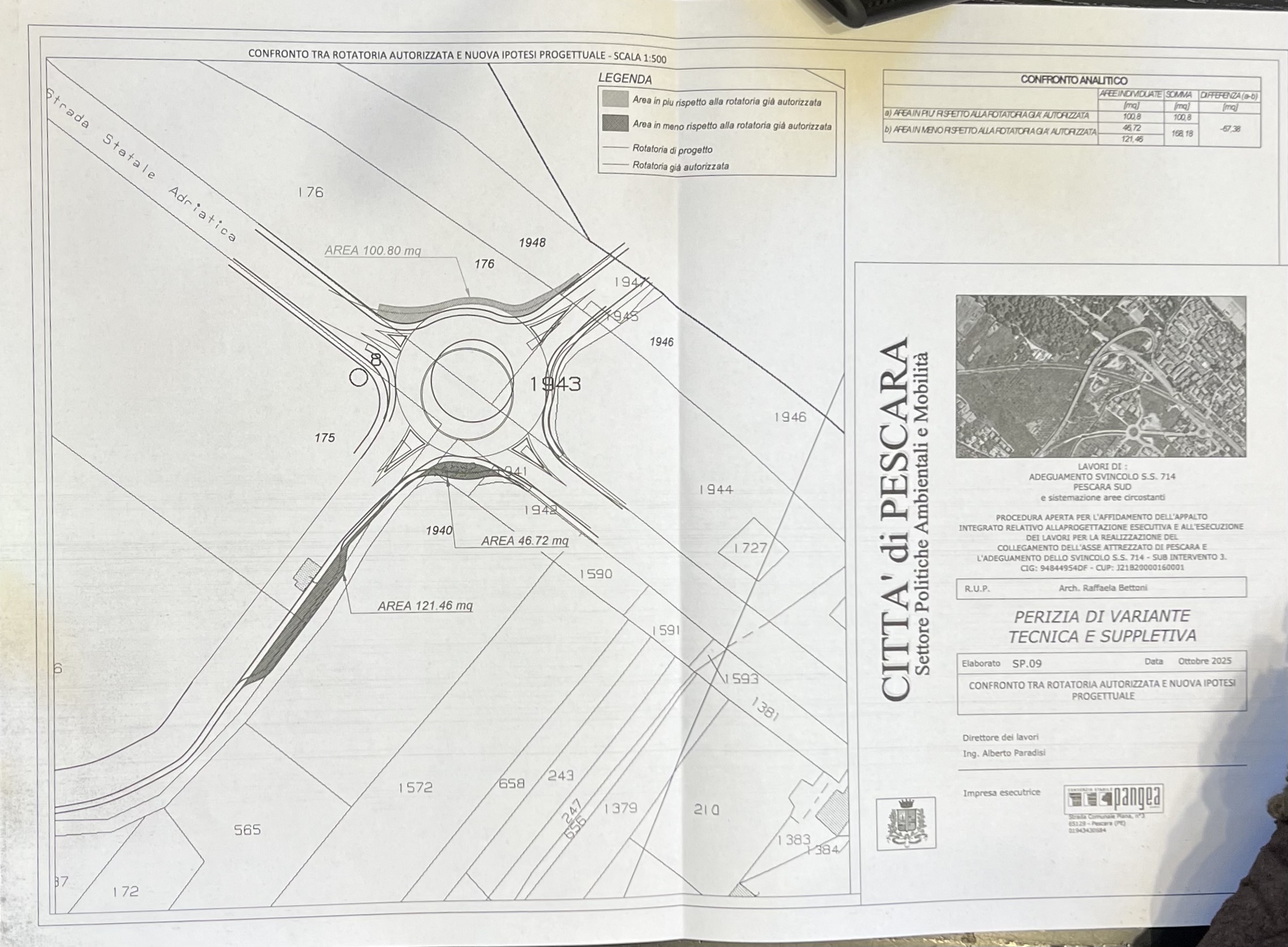 Di Pillo spiega che questa mattina, in commissione lavori pubblici, la dottoressa Bettone ha presentato quella che dovrebbe essere una rotatoria a sud della Riserva della Pineta Dannunziana. Si tratta in sostanza dei lavori di adeguamento dello svincolo della S.S. 714 che dovrebbe unificare Via Scarfoglio e Via Pantini, raccordando il tutto con la nazionale adriatica, al confine tra i comuni di Pescara e Francavilla al Mare.