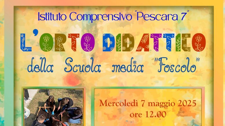 La classi della scuola Foscolo, durante l’anno scolastico, hanno realizzato le loro attività laboratoriali: partendo dai semi hanno seguito il ciclo vitale delle piante fino a vederne lo sviluppo di nuovi, piantati poi nell’orto. L’appuntamento nel giorno del raccolto, tradizionalmente condiviso, è per oggi, mercoledì 7 maggio, a partire dalle ore 12.00, nell’orto didattico realizzato nello spazio verde dell’Istituto comprensivo Pescara 7. L’iniziativa fa parte della rassegna Maggio Scienza realizzata da Scienza under 18 Pescara per l’Abruzzo.