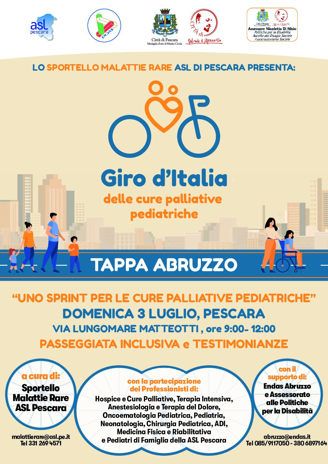Domenica 3 luglio sul Lungomare Matteotti, dalle 09.00 alle 12.00, la Tappa Abruzzo del Giro d’Italia delle Cure Palliative Pediatriche