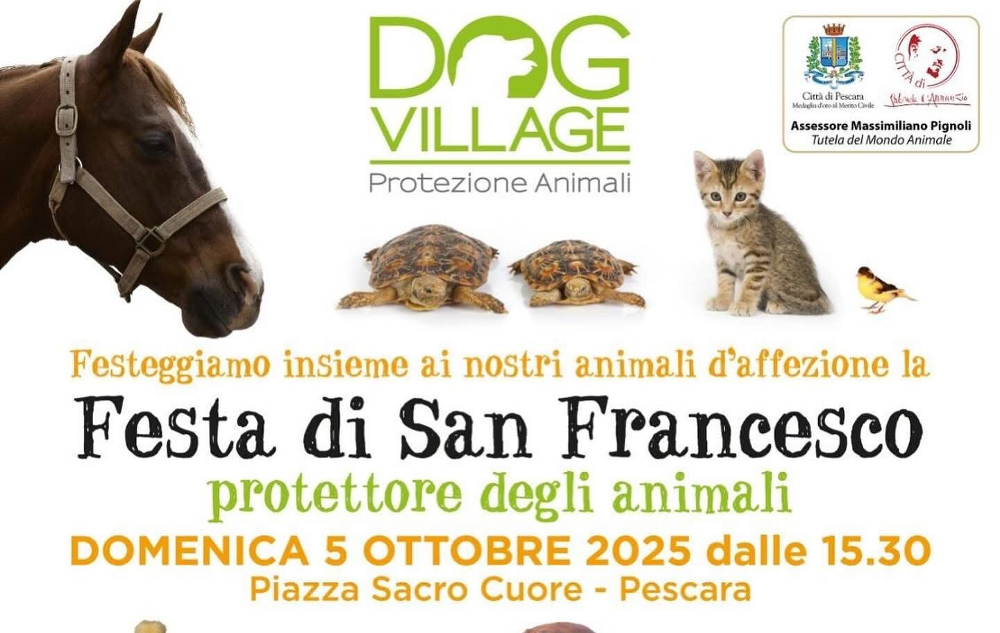 In onore di San Francesco d’Assisi, patrono degli animali, piazza Sacro Cuore ospita un evento dedicato al mondo animale organizzato dall’associazione “Dog Village – Protezione Animali” con il supporto del Comune di Pescara, attraverso l’assessorato alla Tutela del mondo animale