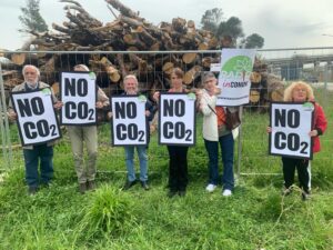 La conferenza stampa è stata preceduta da un flashmob sul destino del legname di esbosco delle attuali operazioni di bonifica.