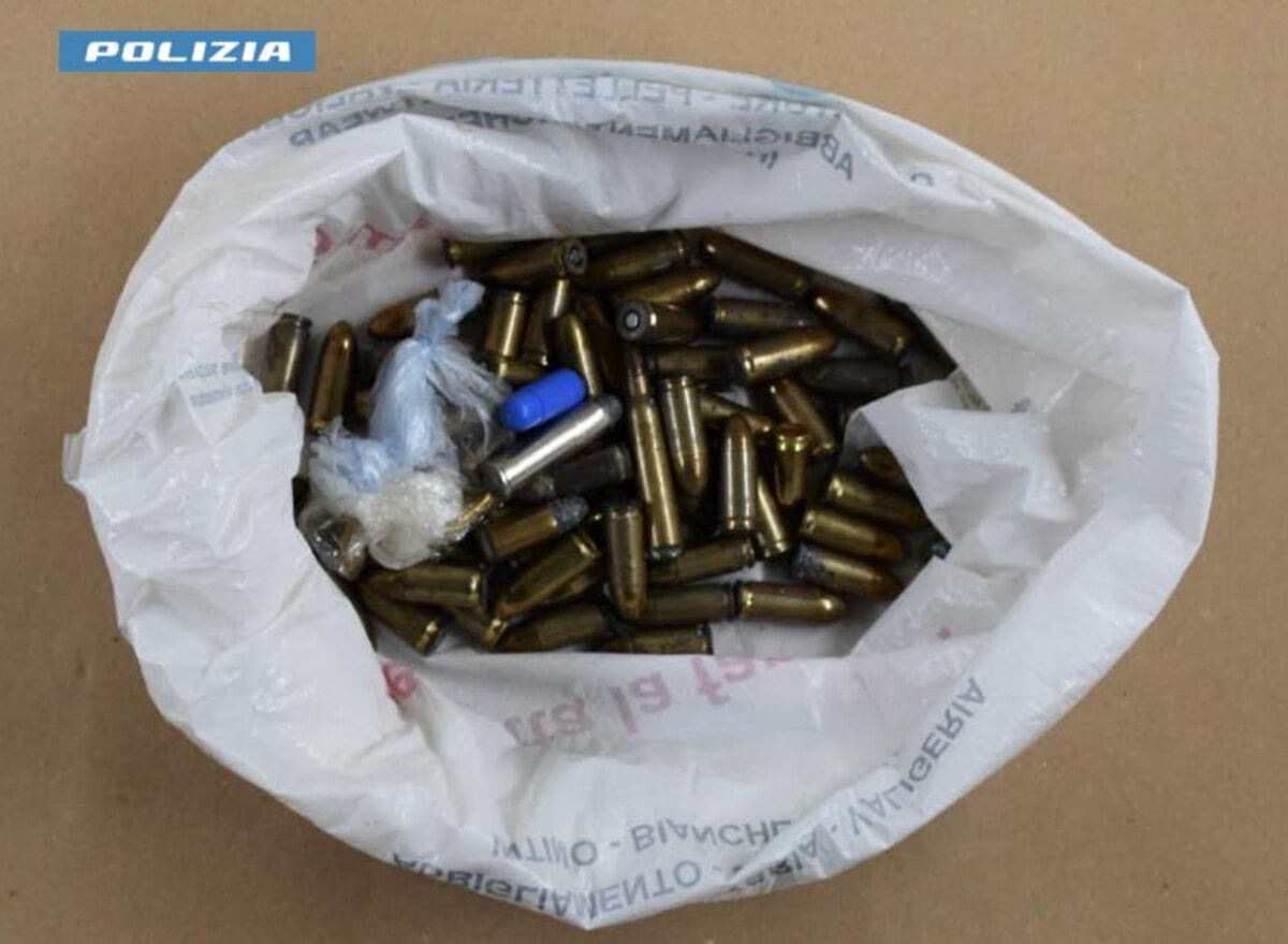 La droga era confezionata separatamente in diversi involucri. In un’altra busta sono stati rinvenuti 72 proiettili di vario calibro. Tutto il materiale è finito sotto sequestro, le indagini proseguono.