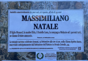 Le esequie saranno celebrate oggi, martedì 13 Settembre alle ore 16:00, nella Chiesa dello Spirito Santo. A dare il triste annuncio il figlio Manuel, la madre Elda, il fratello Luca, la compagna Melanie ed i parenti tutti.