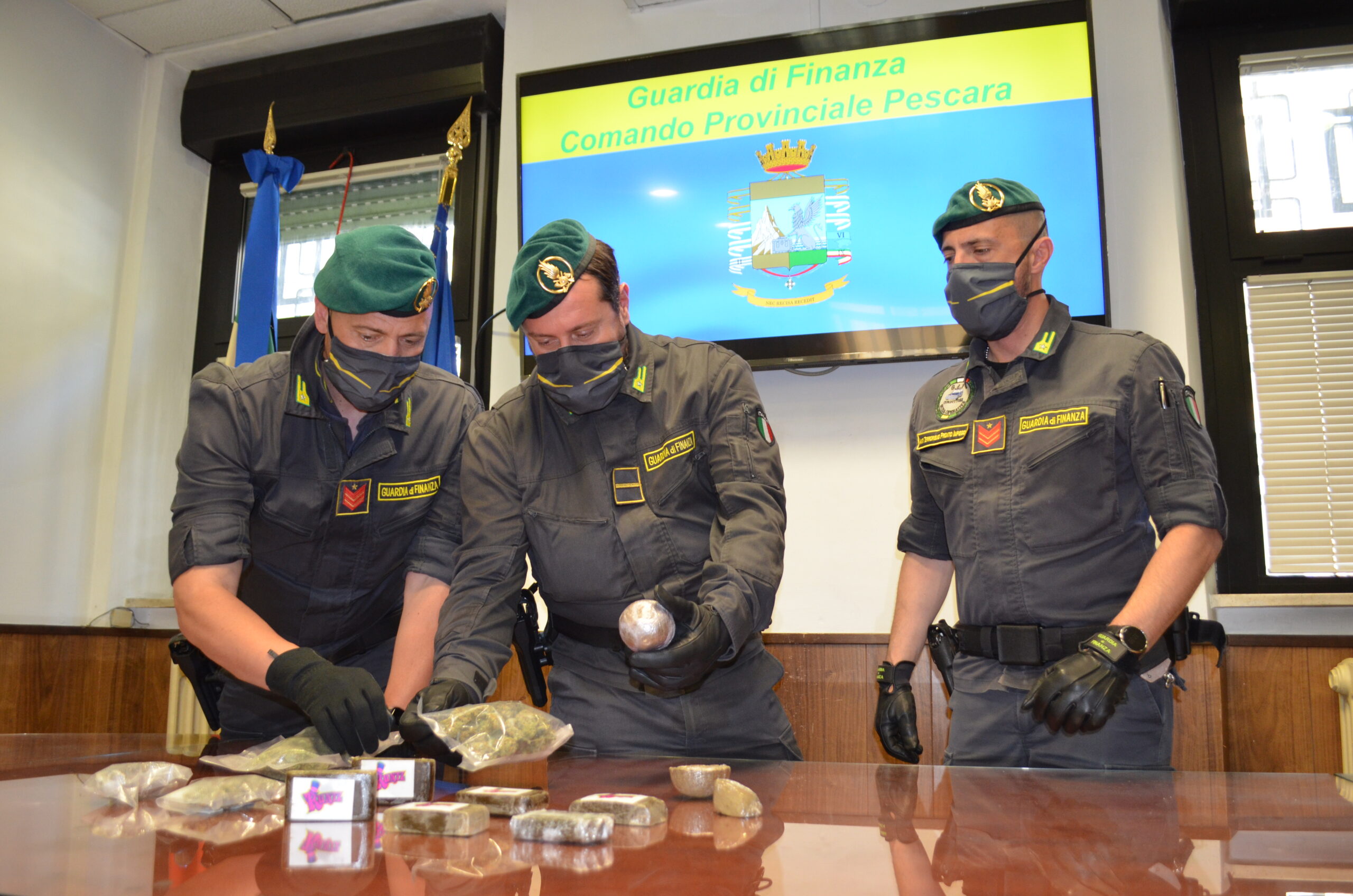 Il grosso della droga era in casa e in un vano contatori del condominio: 150 grammi di hashish e 70 di marijuana, il tutto suddiviso in confezioni di peso variabile, ma soprattutto 900 grammi di hashish negli spazi comuni della palazzina, precisamente all’interno del vano contatori. Il soggetto, pescarese e con numerosi precedenti specifici, è stato arrestato. Avvisato il P.M. di turno competente, per il trentottenne italiano è stata disposta la detenzione domiciliare in relazione alla condotta prevista e punita dall’art. 73 del D.P.R. 309/90, il quale punisce l’ipotesi di spaccio.